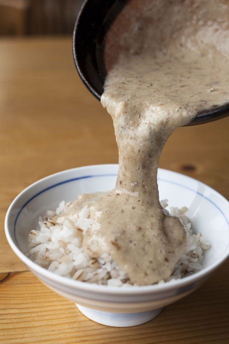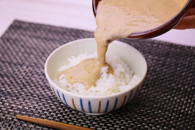 摩りおろした自然薯は、麺つゆや味噌などで伸ばしてご飯にかけ召し上がるのが一般的です。